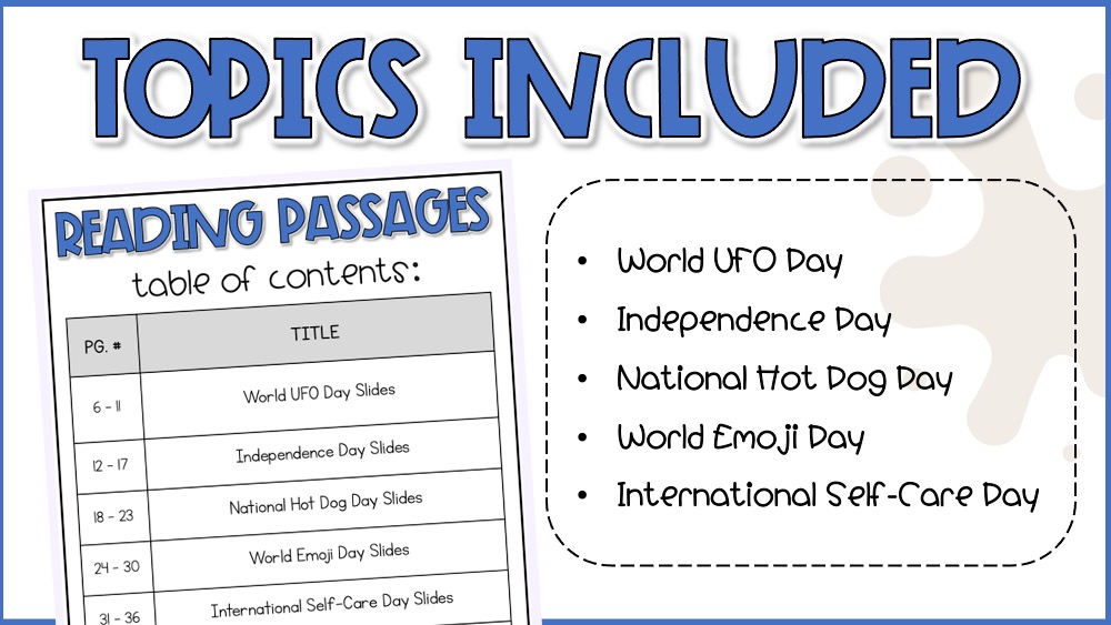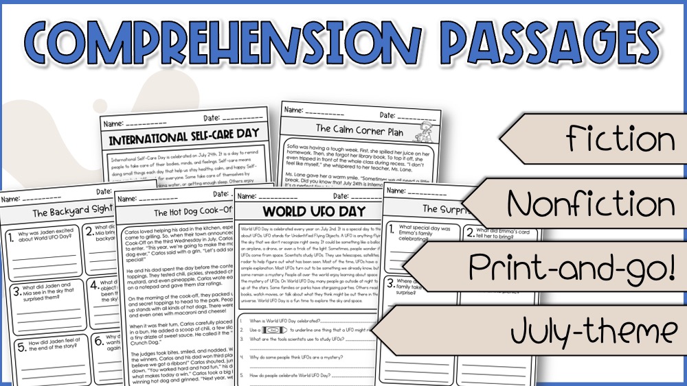 🖨️ What’s Included in the July Reading Comprehension Passages: